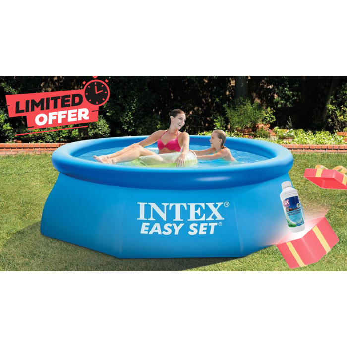 Сглобяем басейн INTEX с надуваем ринг по борда, изключително бърз монтаж, лесен демонтаж, възможност за пренасяне или сезонна употреба.